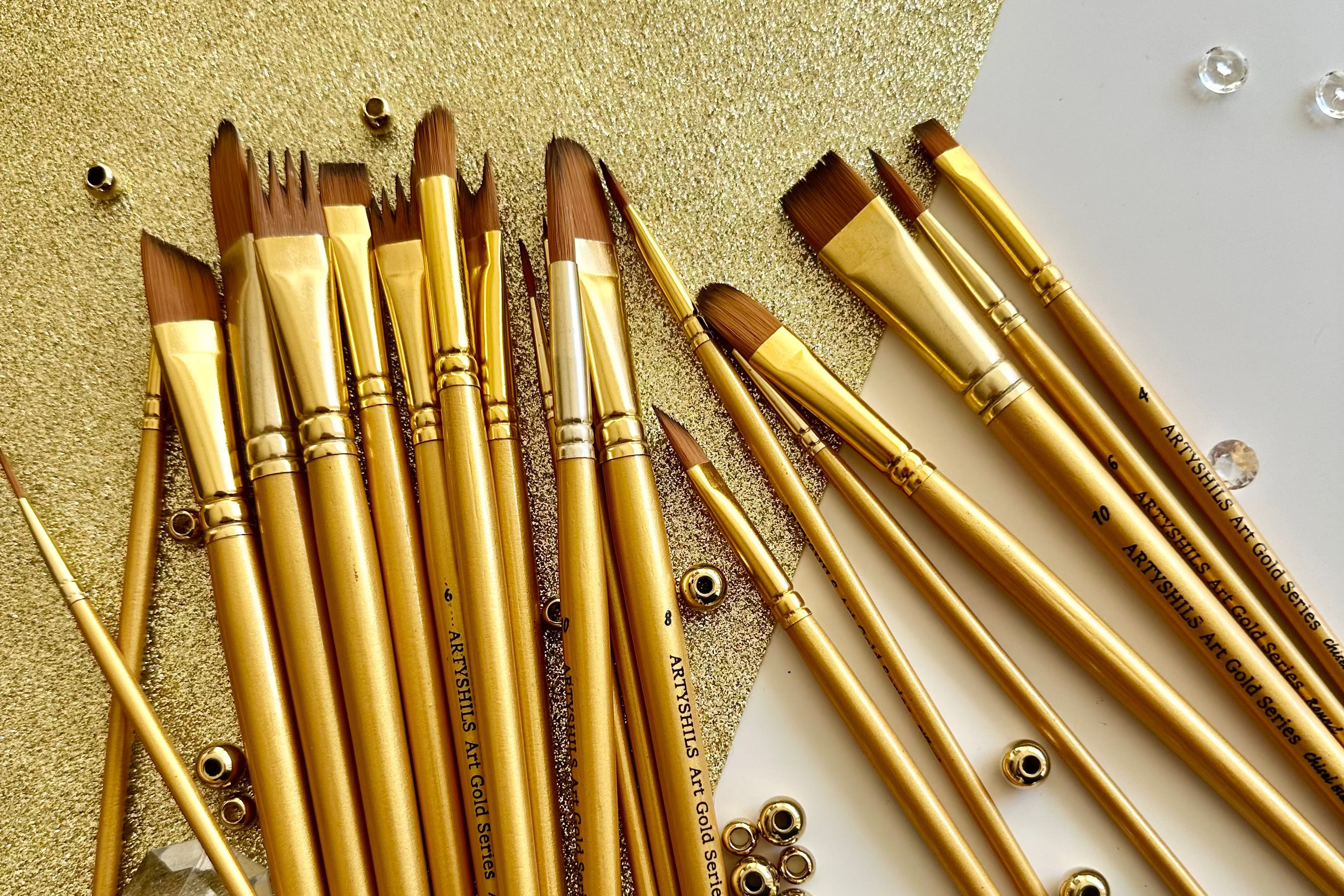 The warm gold handles feel elegant and timeless in the hand, making every session feel special. This collection is about choosing tools that gently elevate your process and invite you to create with confidence and care.